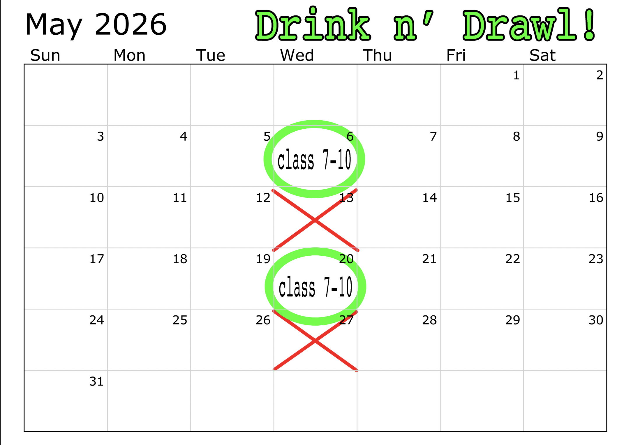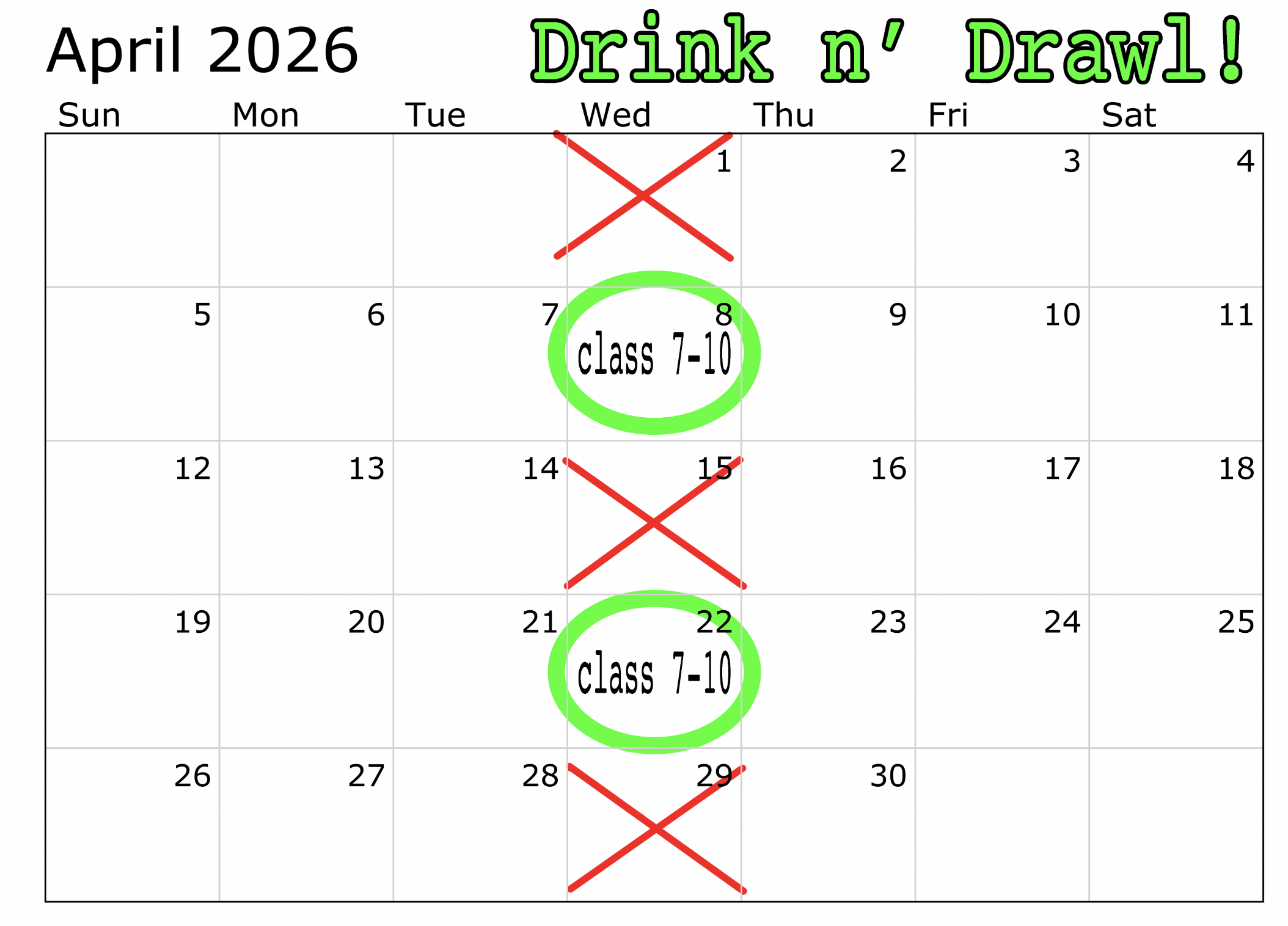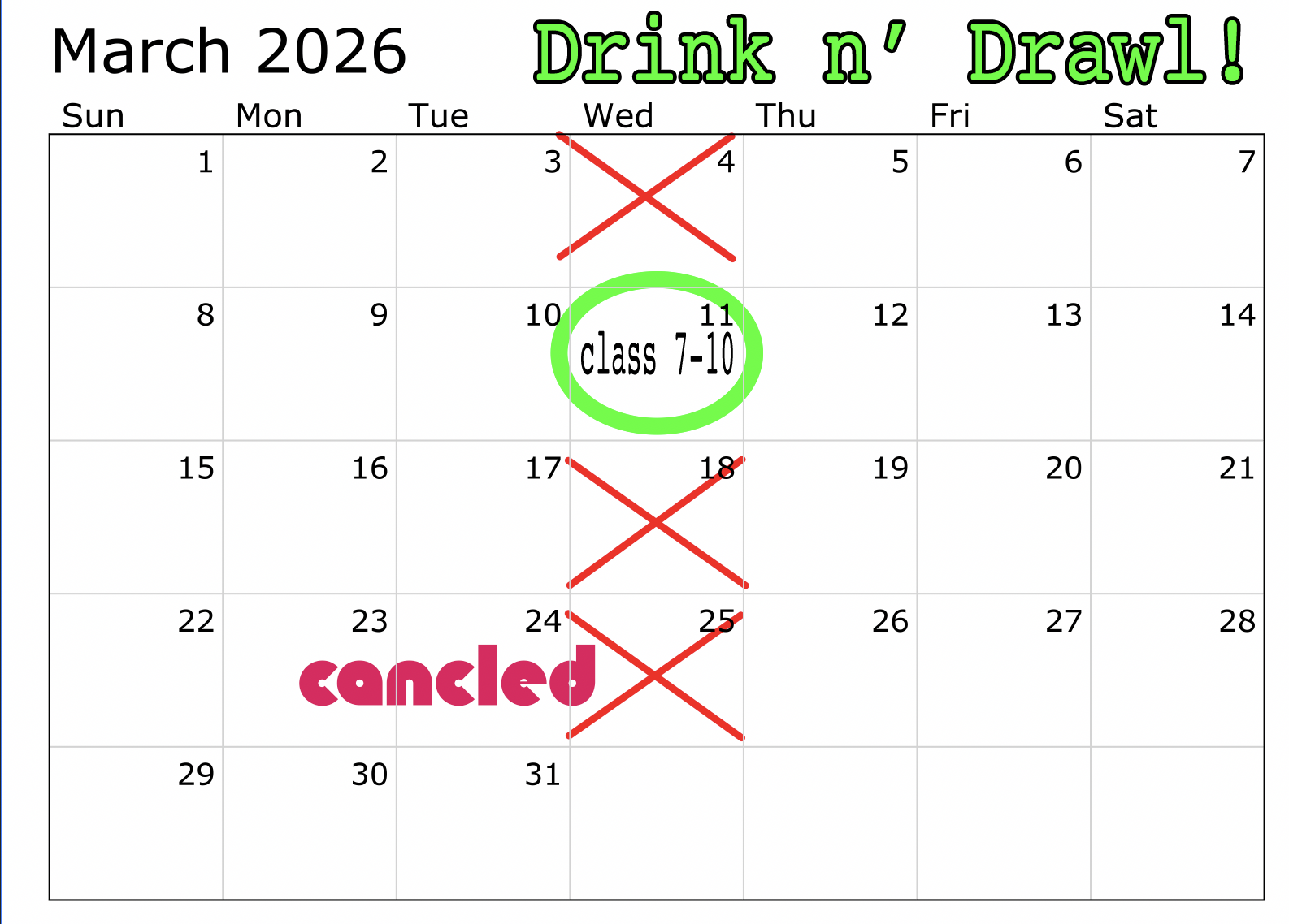 drink’n drawl is on every other wednesday 7pm-10pm at anomaly studio